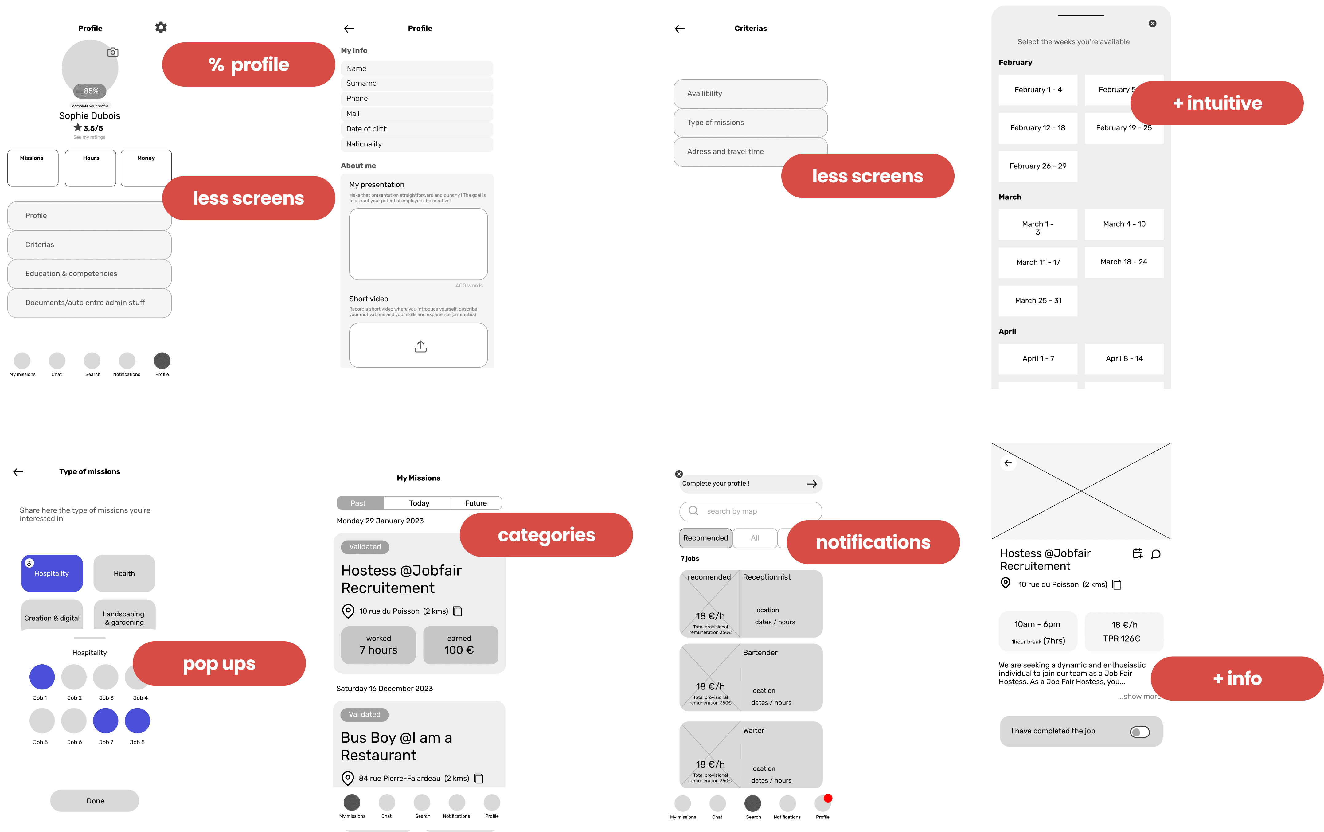 Entrelp is a platform that connects freelancers with occasional job opportunities in the South of France. The goal of this project was to improve the freelancer experience and make it easier for users to find jobs that match their skills and availability.