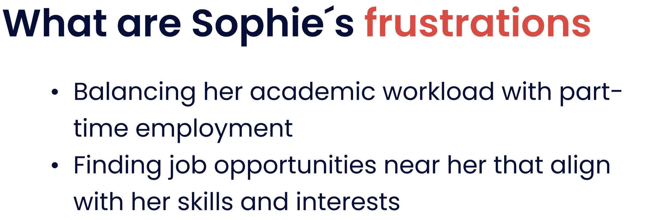Gathering the data from our Empathize phase we got our persona: Sophie a 22-year-old Parisian student navigating the challenges of balancing her academic pursuits with her financial needs. She represented the core of our target user group, providing a focused lens through which we addressed our design challenges.